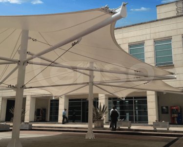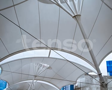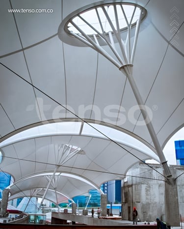 Las membranas arquitectónicas son estructuras resistentes con telas flexibles, diseñadas para soportar cargas mediante tensión. Ofrecen protección contra el clima extremo y son duraderas gracias a su recubrimiento de PVC y protección UV.