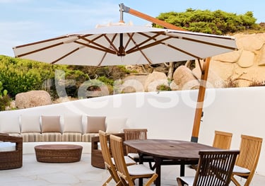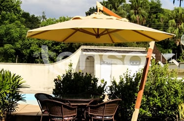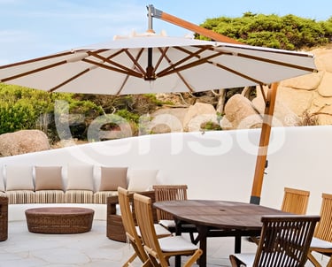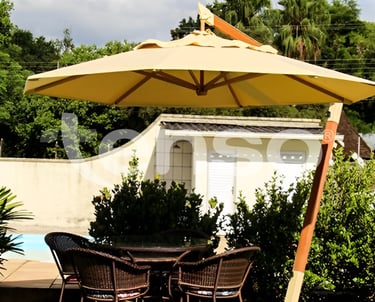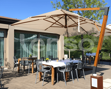Esta sombrilla o parasol de brazo lateral es fabricado en madera teca, posee un brazo lateral el cual brinda más espacio internamente sin que nada lo interrumpa. Es la sombrilla más popular actualmente gracias a su diseño contemporáneo y elegante.